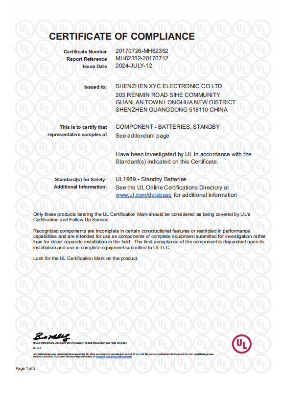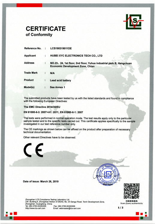 Founded in 2011, Shenzhen XYC Electronic Co., Ltd. is an international high-tech enterprise specializing in Valve Regulated Lead-acid (VRLA) batteries and Lithium batteries.