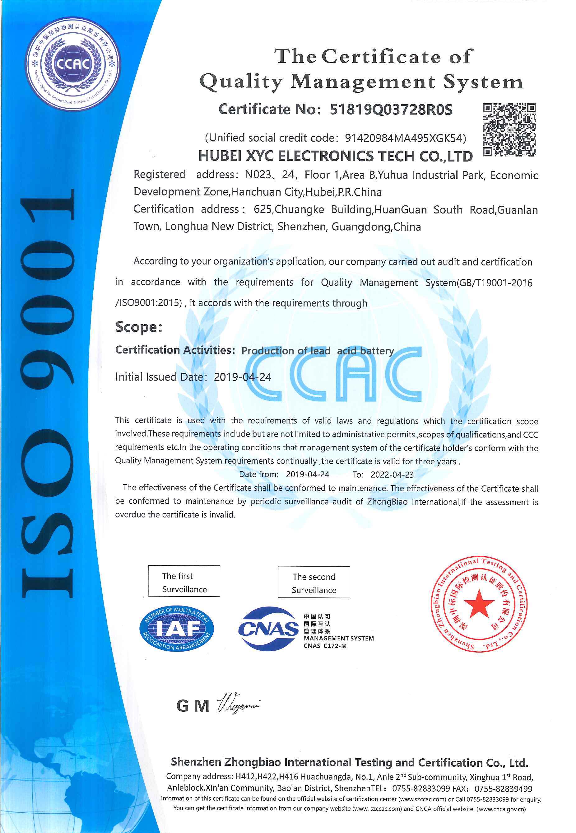 XYC conducts strict production control from raw material to the final product and accompanies advanced production and testing equipment, XYC products have a long service life, high energy, and are cadmium-free. XYC has obtained certificates including CE, ISO9001, UL (Reference No.: MH62352), meeting the international standard, and facing no barriers to entering any market. XYC products are exported to more than 100 countries and regions all over the world.